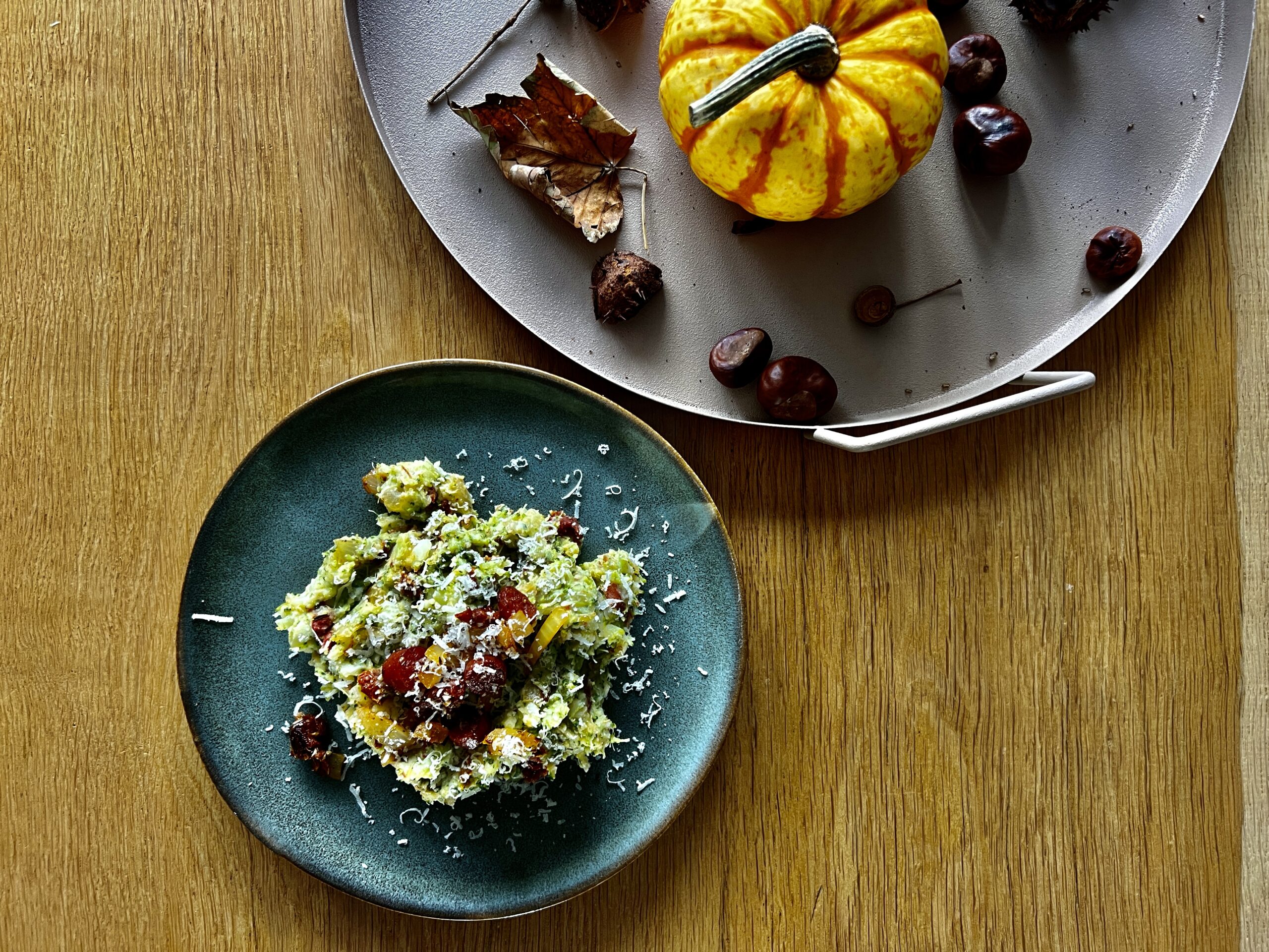Het is weer tijd voor stamppot! Deze keer een recept voor Italiaanse broccoli stamppot met salami, pesto, zongedroogde tomaatjes en Parmezaanse kaas. Oer-Hollands, maar dan met een Italiaanse twist.